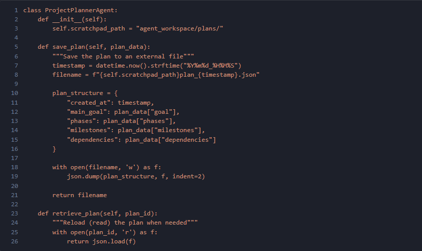 例1:Project Planner Agent 外部ファイルにプロジェクト計画を保存・取得。