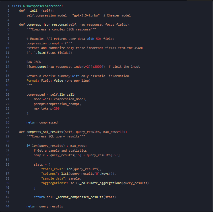 API response や SQL 結果にはノイズが多く、そのままでは token を無駄に消費。